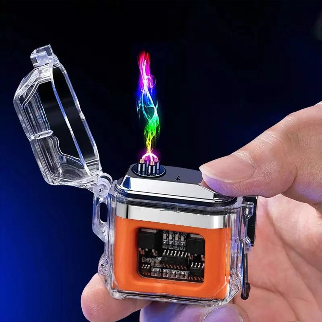 This windproof lighter is a thunderbolt style double arc featuring a strong, thick, large flame double arc for fierce fire and fast ignition. It is a technological USB lighter.